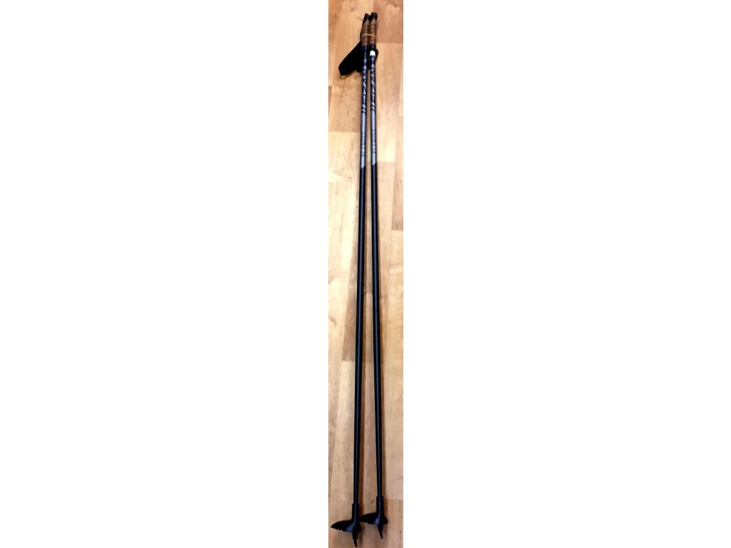 Lehké a odolné hole na běžky XC Cross s kovovým hrotem a s plastovou rukojetí s textilním poutkem vyrobené z hliníku 5083 o průměru 16mm