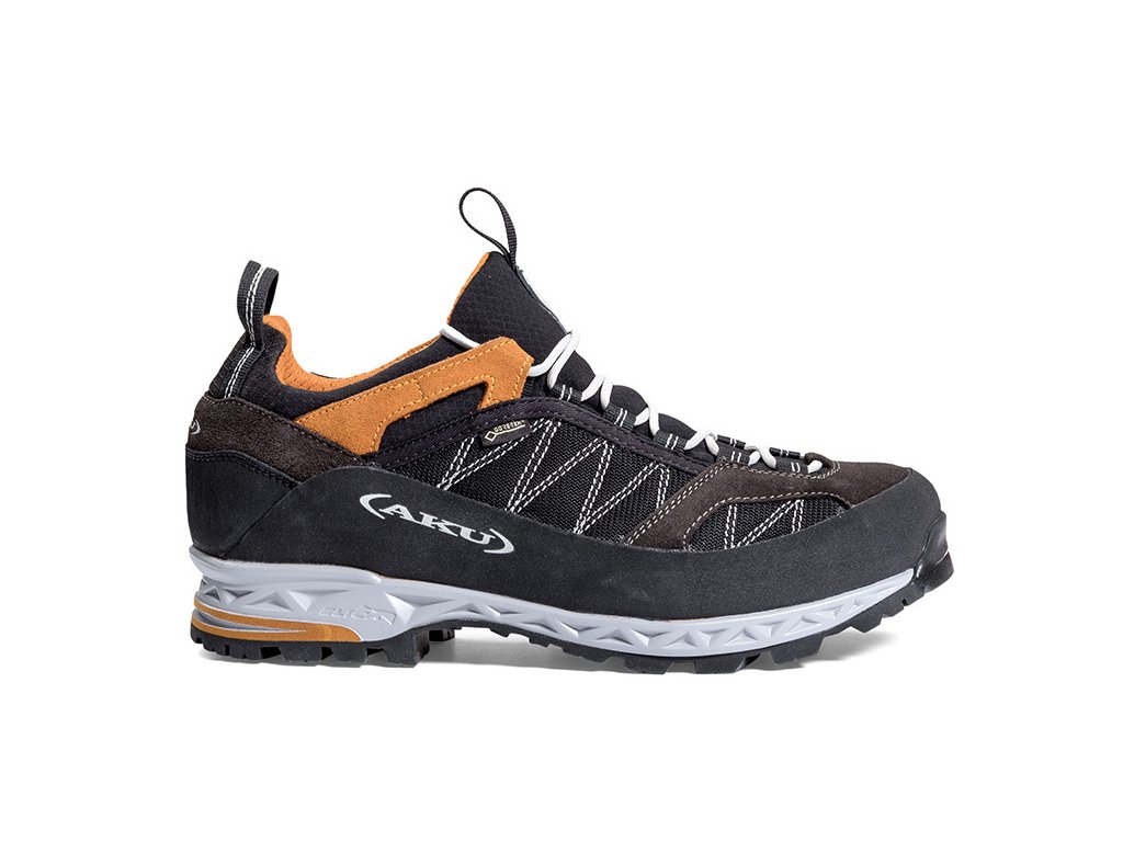 Pánská nízká technická nepromokavá treková bota Aku TENGU s membránou Gore.tex s vnitřní ponožkou místo jazyka. Trekovka Tengu se osvědčila i v obtížném terénu klidně i s těžkým batohem, díky Stabilizačnímu systému - AKU IMSspolu se zpevněním klenby - AKU Exoskeleton, velmi dobře přilnavé podešvi Vibram Curcuma a především díky systemu ELICA