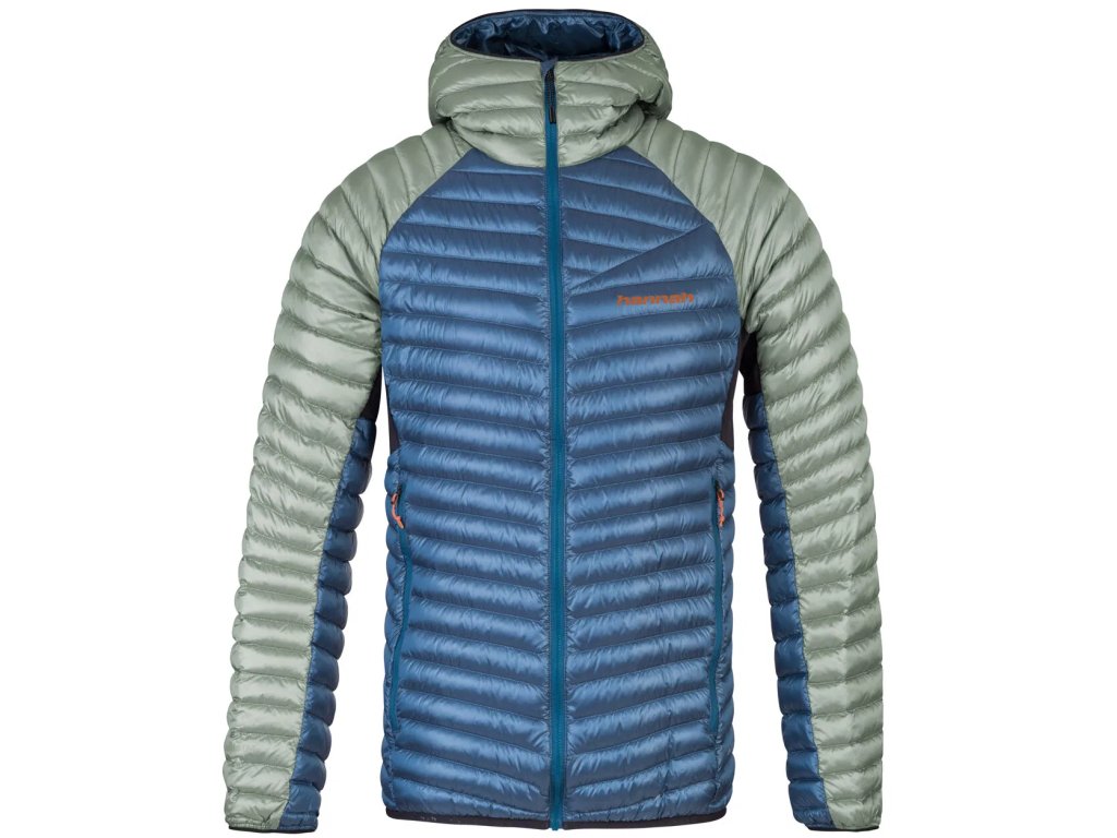 Pánská odlehčená technická atraktivní péřová bunda Hannah Mio se svrchní lehkou pevnou nylonovou tkaninou Airlite DMF s vodoodpudivou úpravou DWR. Termoizolační vrstvu tvoří vysoce kvalitní kachní peří v poměru 80/20 s plnivostí 750 cuin s použitím technologie komorového plnění.