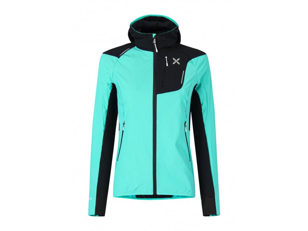 Dámská softshelová technická bunda Montura Ski Style 2 s kapucí má větru a voděodolný přední díl a je prodyšná v oblasti zad a podpaží.