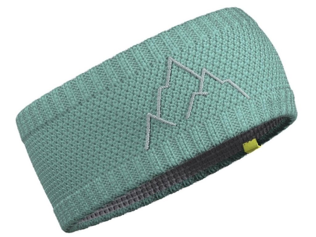 Pletená čelenka z merino vlny s barevně kontrastní výšivkou. Na vnitřní straně má čelenka funkční syntetickou podšívku. Klasický způsob pletení čelenky přechází na krajích k žebrovanému úpletu , který se dobře přizpůsobí obvodu hlavy a zároveň působí jako dekorativní prvek.