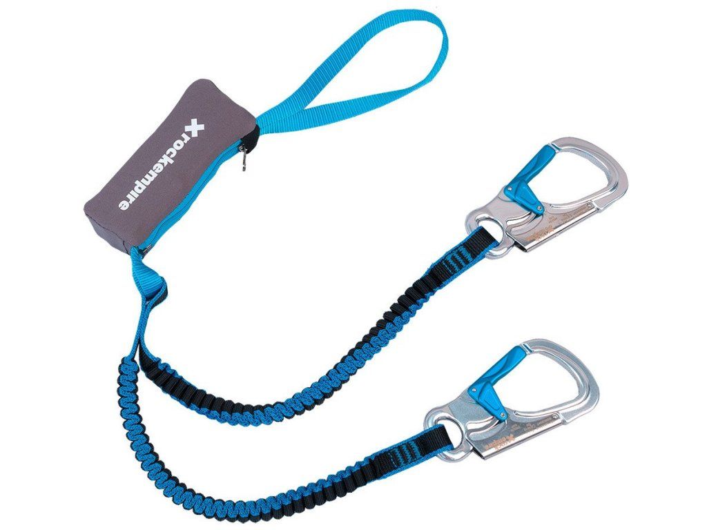 Bezpečný a snadno ovladatelný ferratový set Rock Empire DynaGo se skládá ze dvou karabin s dlaňovou pojistkou a pevnostního textilního oka, sloužící pro spojení s úvazkem nebo pro odsednutí.a párací brzdy se dvěmi pružnými jistícími rameny.
