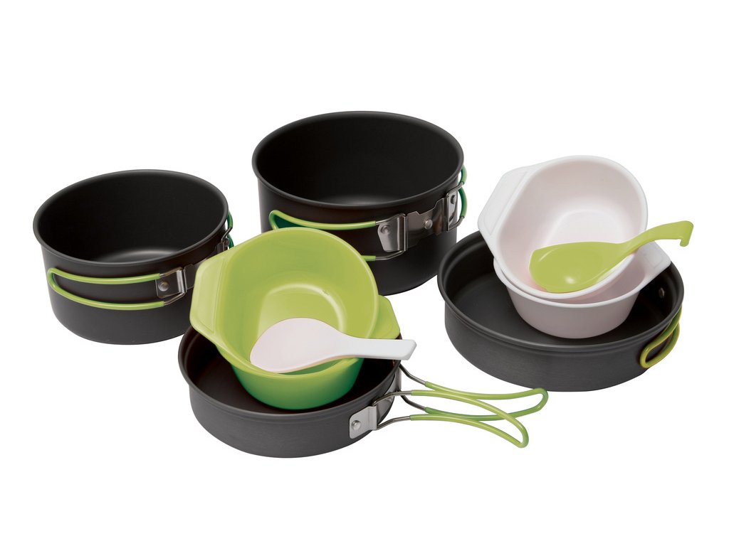 Dva hrnce se dvěma poklicemi sloužícími také jako pánve. Set je vyroben z hliníku s anodizovaným povrchem. Sklopné rukojeti jsou vyrobeny z ocelového drátu, opatřeného silikonovou žáruvzdornou bužírkou. Anodizace (též Eloxování) vytváří na povrchu materiálu velmi pevnou a tvrdou vrstvu oxidu hliníku, která brání další oxidaci, zvyšuje pevnost materiálu a jeho odolnost vůči otěru. Součástí sady je také set zahrnující čtyři plastové misky o objemu 150ml, malá naběračka a obracečka. Celkový objem velkého hrnce je 1750ml, z toho reálně využitelných je 1500ml. Objem malého hrnce je 1100ml, z nichž využitelných je 900ml. Poklice se dají využít jako pánve. Jejich objemy jsou 800ml, 600ml celkové a 500ml, 375ml využitelné. V malém hrnci lze pohodlně přenášet buďto příslušenství nebo 230g kartuši. Současně je zde místo i pro malý plynový vařič, utěrku a houbičku na nádobí. Toto vybavení není součástí balení.