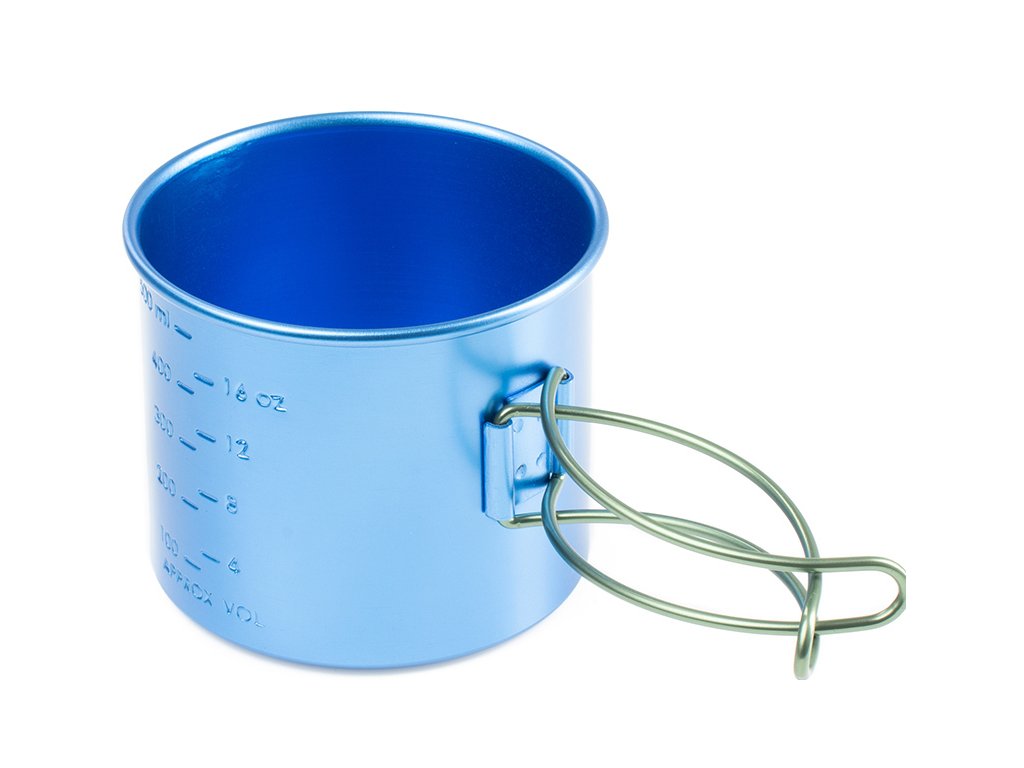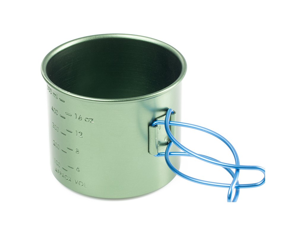 Tento stylový hrneček je navržený tak, aby do něho zapadla klasická outdoorová litrová láhev a s jednoduše složitelnými oušky vám zaručuje maximální skladnost. Na hrnku je vyražena i stupnice objemu. Přesto, že je hrnek z eloxovaného hliníku, který je odolný proti oxidaci a velmi odolný i mechanicky, nepatří na volný oheň.