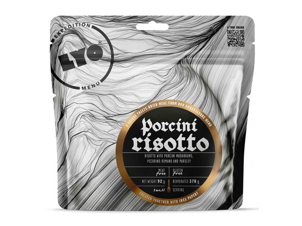 Rýže povařená do al dente měkkosti, je dokonale dokreslena krémovým závojem. Do popředí chutí vystupují šťavnaté kousky hříbků – krále mezi houbami – ukryté mezi těmito dvěma světy. Navrch štědrá špetka sýra Pecorino Romano a zelené petrželky... Stačí jen přidat horkou vodu a krátce promíchat