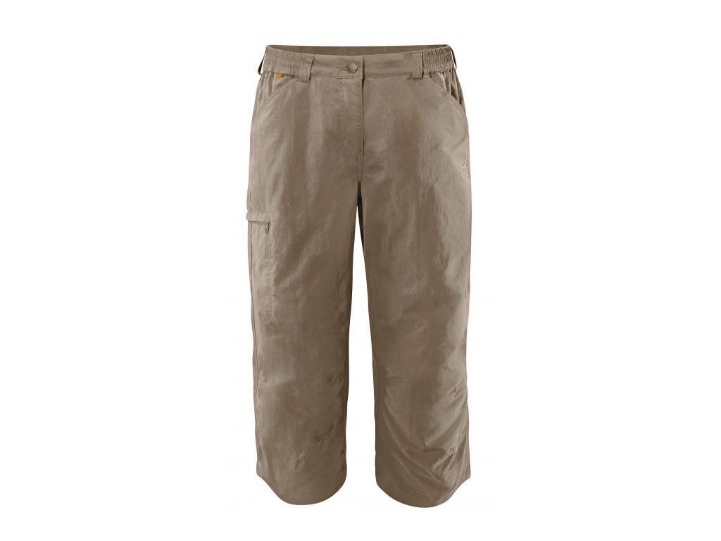 Dámské funkční třičtvrteční kalhoty Vaude Farley g vyrobené z rychle schnoucí polyamidové tkaniny Suplex příjemné na omak s úpravou proti UV záření UVR 40. Kalhoty mají pružný pas s poutky a zip s knoflíkem, dvě hlavní kapsy vpředu, dvě vzadu, a jednu na pravém stehně.