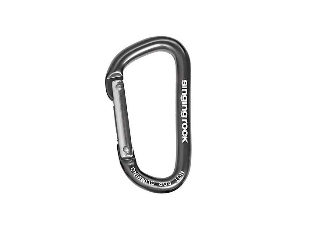 Karabina Singing Rock D Mini má tvar písmene D je vhodná pro spojení různých domovních klíčů, pro uchycení lezeček, nářadí a jiného potřebného příslušenství na úvazek
