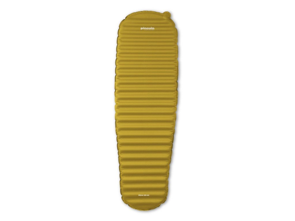 Lehká a skladná samonafukovací karimatka Pinguin Peak 25 NX má tvar mumie. Broušená nesmekává svrchní vrstva materiálu zvyšuje jeho tření, takže se vám spacák nebude klouzat z karimatky.