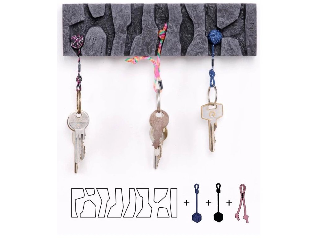 Věšák na klíče od české značky FujFuj vyrobený z šedého betonu. Moderní design hodící se do každého interiéru skvěle kontrastuje s bílou zdí. Držák obsahuje 7 spár do kterých je možné vkládat mini vklíněnce nebo uzlíky. Vyrobeno v ČR.
