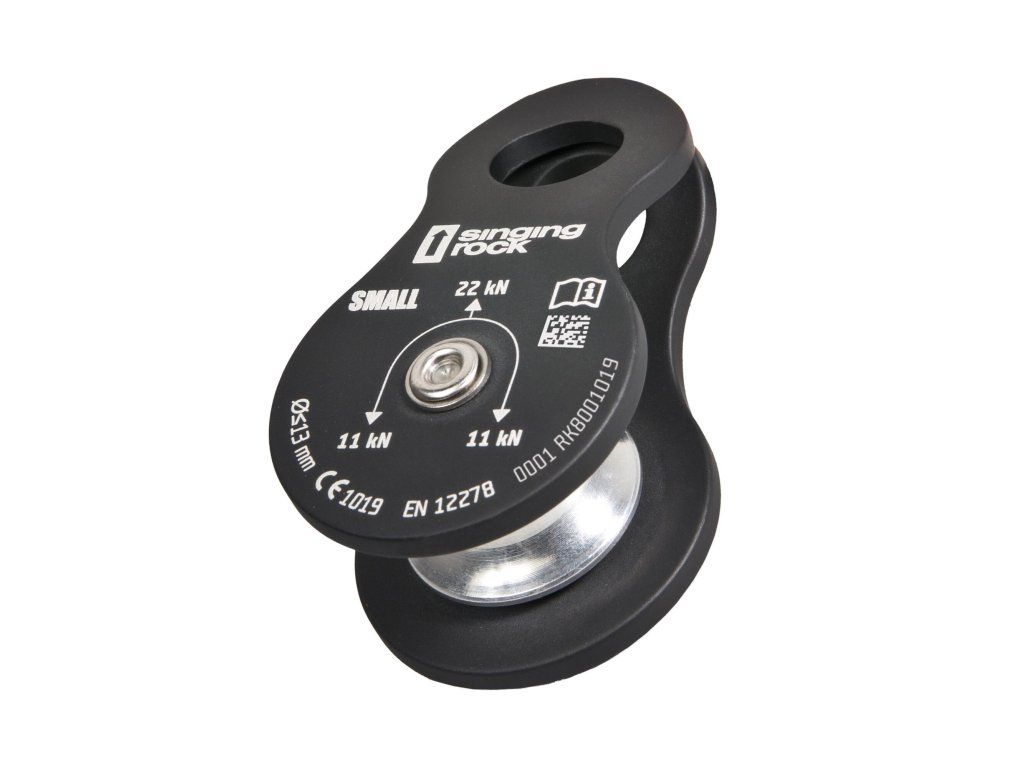 Jednoduchá lehká kladka Singing Rock malá vhodná pro vytahování a záchranu, pro použití se statickými a dynamickými lany. Nezbytná součást výbavy při ledovcových túrách, zejména pro případ záchrany z trhliny.