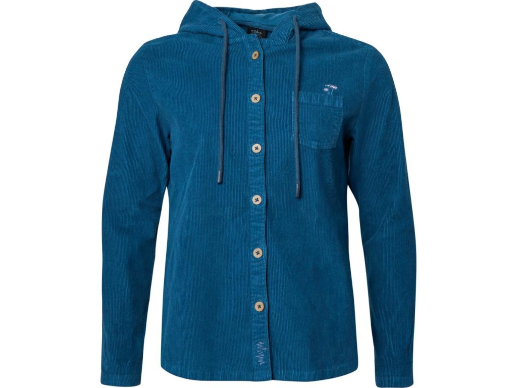 Dámská trendy manšestrová košile (mikina) Chillaz Fendels volného střihu. Košile má kapucí s možností regulace, zapínání na knoflíky a náprsní kapsu. Jemná květinová výšivka jako ženský detail a uvolněný střih dotvářejí originální styl, Ideální pro outdoorová dobrodružství i pro procházku městským parkem.