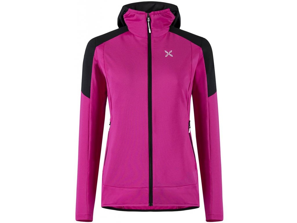 Dámská lehká funkční mikina Montura Light Revolution s kapucí vyrobená z dvousměrně strečového 3D microgrid úpletu, směs polyesteru a elastanu, díky čemuž je výborně prodyšná, protože kontaktní body na vnitřní straně rychle odvádějí vlhkost. Mikina má pružnou kapuci a spodní lem, dvě boční kapsy na zip.