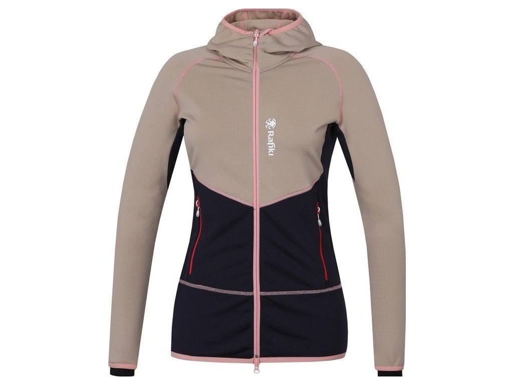 Celopropínací dámská technická mikina Rafiki Linya s kapucí vyrobená z polyesterového úpletu Polarstretch Grid, který skvěle odvádí vlhkost díky vnitřní vaflové mřížce. Princip - vzduchové kanálky dovolují, aby vzduch lépe proudil a odváděl vlhkost. Mikina je vhodná jako svrchní zateplovací vrstva pro jaro léto podzim v Ádru i na Prachově a v zimě pod svrchní nepromok nebo péřovou bundu . Určitě oceníte kapuci, která se bez problémů vejde i pod helmu, dvě kapsy pro ruce do které se vám kromě otvíráku na pivo vejde i sposta dalších potřebných věciček, dvoucestný hlavní zip je samozřejmostí.