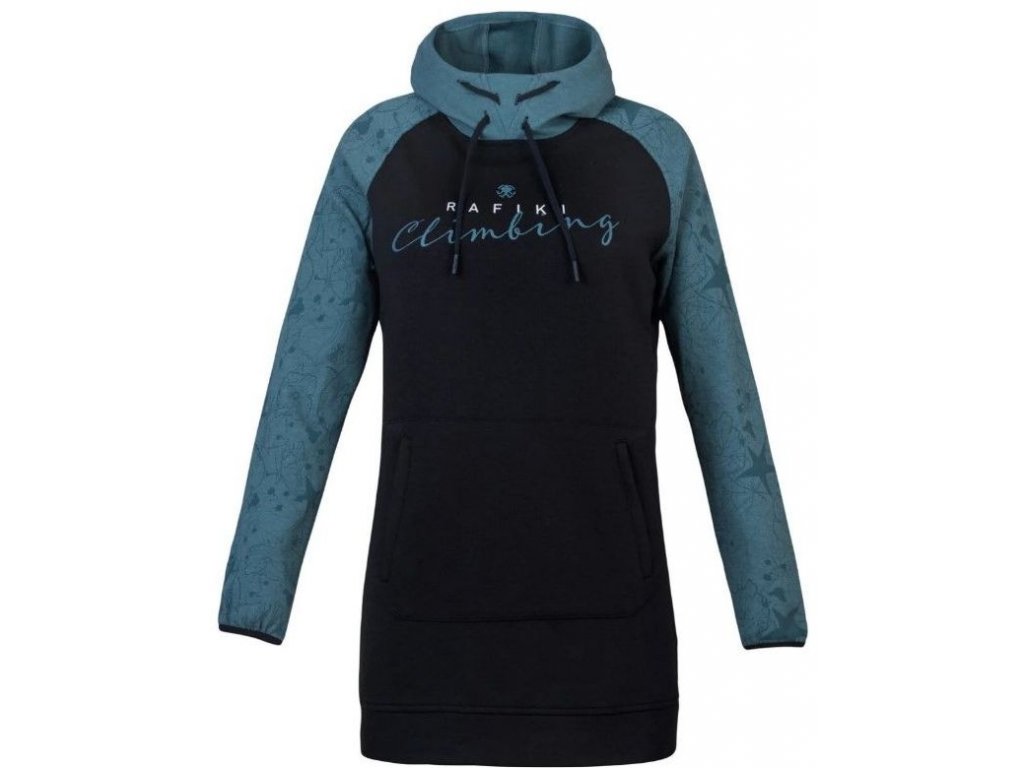 Dámská stylová funkční klokanka Rafiki Mandala má kapuci s možností regulace. Mikina je prodloužená pod zadek, má rukávy s potisky Rafiki motivy a protože klokanka tak s klokaní kapsou která má dva zipy proto aby Vám v převisu nevypadla rtěnka nebo pudr. Na spodku bundy široký lem a rukávy ukončené pružnou páskou, volný střih Regular Fit.