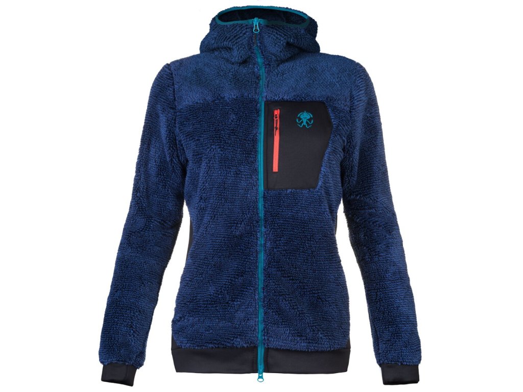 Dámská celorozepínací stylová (chlupatá ) mikina Rafiki Tarifa s kapucí z počesaného fleecu se skvělými thermoizolačními vlastnostmi. Mikina má. dvě kapsy pro ruce a jednu náprsní s kontrastními zipy a s možností vstupu i zevnitř, na bocích má prodyšné panely, konce rukávů a spodek mikiny s pružnou manžetou.