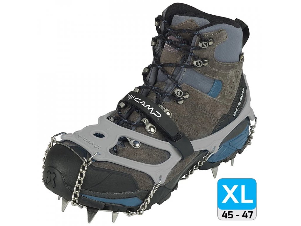 Ice Master EVO jsou turistické nesmeky se 13ti 15mm hroty z nerezové oceli. Nesmeky umožňují bezpečnou a pohodlnou chůzi po zledovatělém terénu. Rovnoměrné rozmístění hrotů zaručuje maximálně efektivní účinnost při kontaktu se zasněženým, zledovatělým či kluzkým povrchem. Inovované upevnění k botě je zajištěno pomocí pružného elastomeru, který dokonale obepíná botu (je nutné jen podle boty zvolit tu správnou velikost). Elastomer je navíc opatřem fixačním popruhem na suchýzip přes nárt pohorky. Nazouvání zvládnete snadno pomocí připraveného poutka na patě. Nesmeky Ice Master EVO jsou vhodné pro zimní turistiku i mimosezónní vycházky kde vás může překvapit led. Ice Master EVO jsou designované pro pohorky.