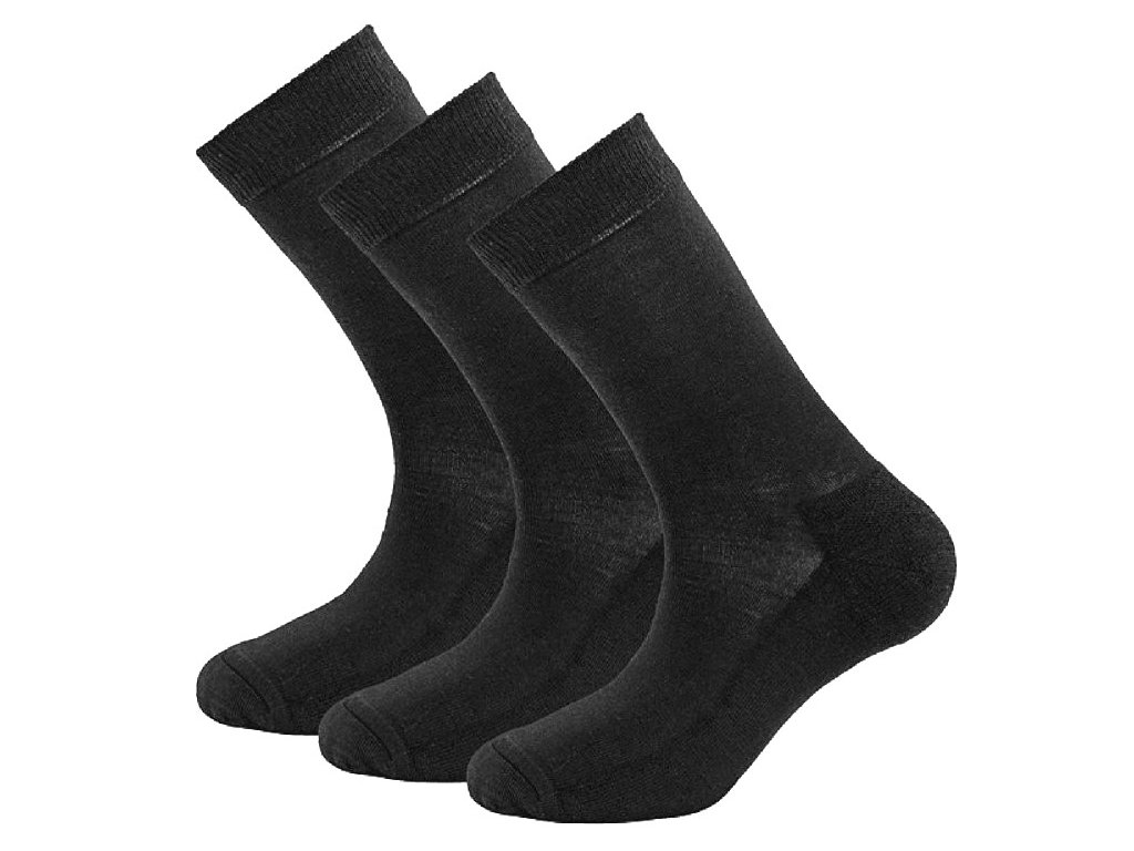 Balení 3 páry silnějších univerzálních vlněných ponožek Devold Daily Medium . Ponožky mají pohodlný lem, zesílenou patu a špičku pro delší životnost, vypodložený nášlap pro větší pohodlí a tepelnou izolaci.
