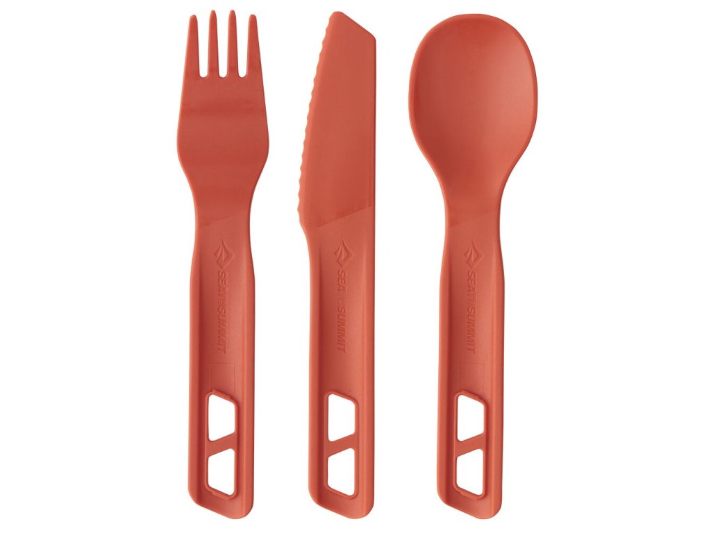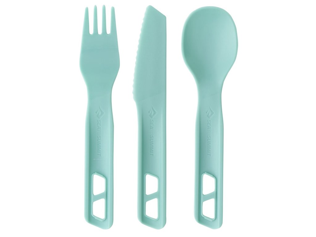 Kompletní cestovní příbor od značky Sea To Summit vyrobený z odolného a zdravotně nezávadného polypropylenu. Obsahuje lžíci, vidličku a nůž. Jednotlivé kusy se dají spojit dohromady a vznikne vám tak jejich prodloužená varianta, se kterou se lépe jí z hlubokého nádobí (hrnce) nebo se výborně hodí pro jezení dehydrované stravy přímo z obalu.