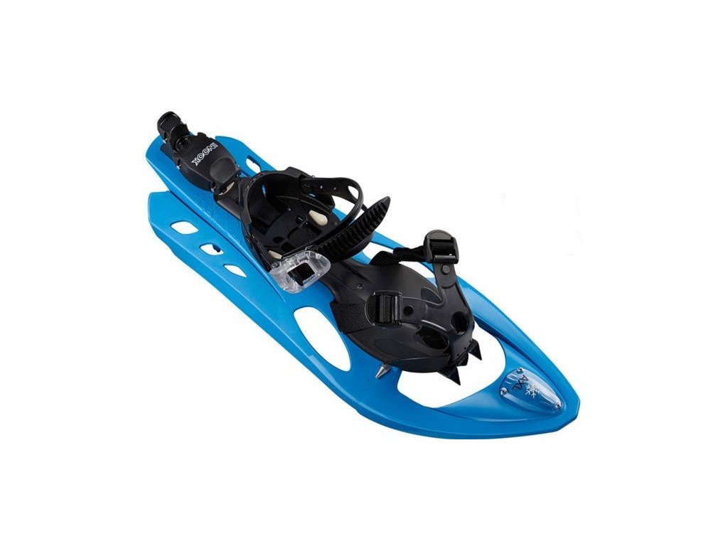 Dámské sněžnice Inook AXL mají nosnou plochu sněžnice vyrobenou z velmi kvalitního plastu, který je dostatečně pevný i v tuhých mrazech, mají sportovní tvar, na spodní straně jspo osazeny šesti ocelovými hroty a dalšími dvěma na výklopné špičce. Sněžnice Inook mají univerzálně řešený systém uchycení špičky boty,(trekkingová i snowboardová), díky posuvnému systému uchycení paty je velmi snadno nastavitelná pro jakoukoliv velikost boty. . Inook Inookem dělá jedinečný systém zamykání paty. Zamknutí či odemknutí lze jednoduše udělat holí vestoje, jak známe ze skialpového vázání naví lze patu nastavit tak že sníží sklon proti svahu při stoupání (jako skialp vázání) Dotažení boty je pomocí ráčny jak u snowboardového vázání.