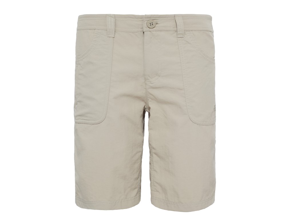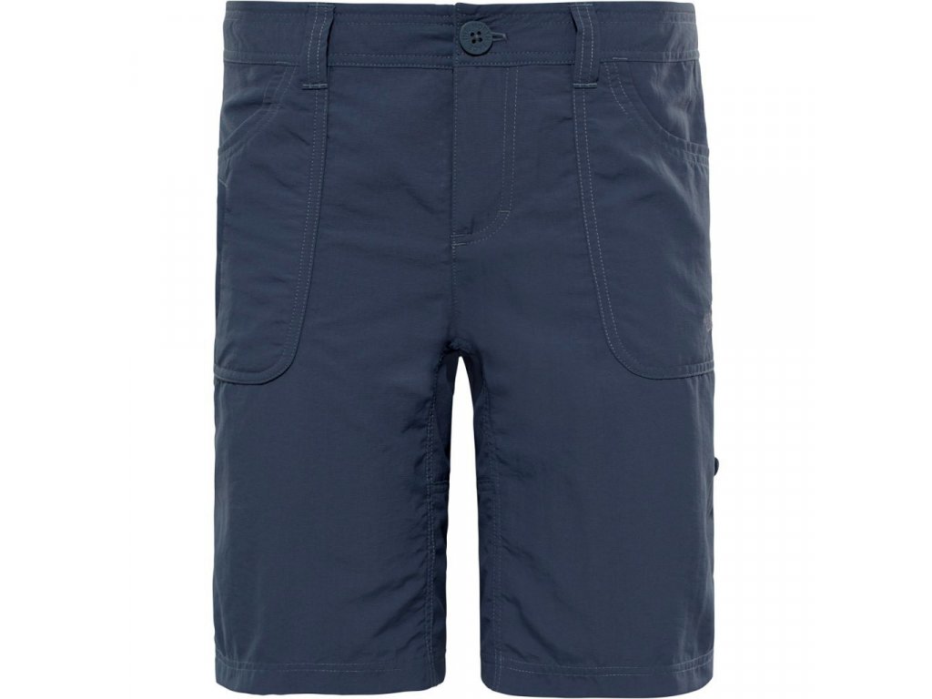 Funkční lehké pdámské univerzální šortky North Face HorizonSunnyside , jsou vhodné pro jakoukoliv letní outdoorovou aktivitu, použitelné i pro vysokohorské letní tůry. Materiál nylon s úpravou pro rychlé vysychání quick drying, proti UV záření a vodoodpudivou úpravou DWR. Kraťasy mají dvě kapsy vpředu, dvě vzadu, v pase jsou zapínané na druk se zipem, a mají poutka na opasek , nohavice s možností zkrácení na knoflík