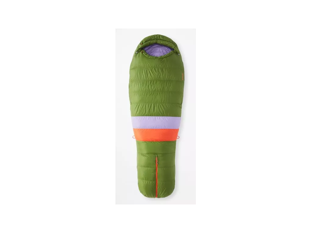 Kvalitní třísezonní péřový spacák Marmot Angel Fire 2 ve tvaru mumie je vyrobený z prachového peří s plnivostí 650 cuin.