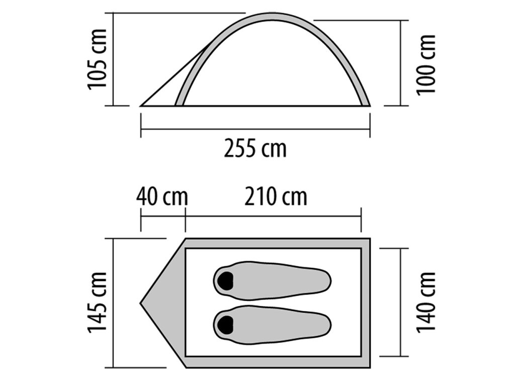 | Vnitřní stan:: | Prodyšný polyester, PU zátěr, nepromokavá síťovina |