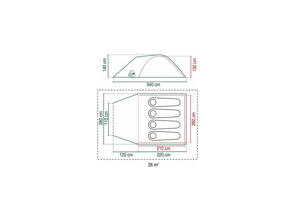 Konstrukce stanu je samonosná se dvěma zkříženými pruty, tvořící ložnici a třetí předsunutý prut vytváří prostornou předsíňku s integrovanou podlážkou. Zatemnitelná průhledná okna v předsíňce dodávají dostatek světla a ventilace zabraňuje srážení vlhkosti uvnitř stanu.
