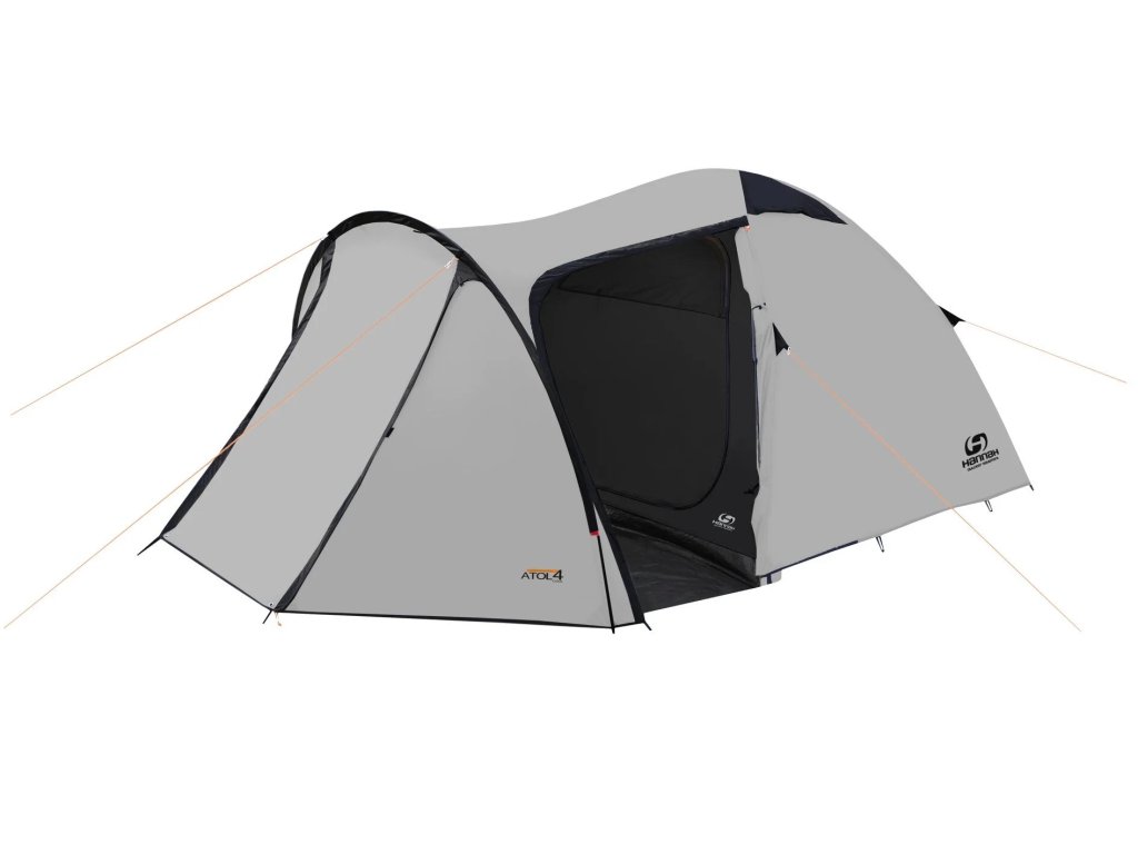 Dvouplášťový prostorný stan Hannah Atol 4 Cool pro čtyři osoby se zatmavěnou ložnicí je ideální volbou pro kempování za letních slunných dnů.