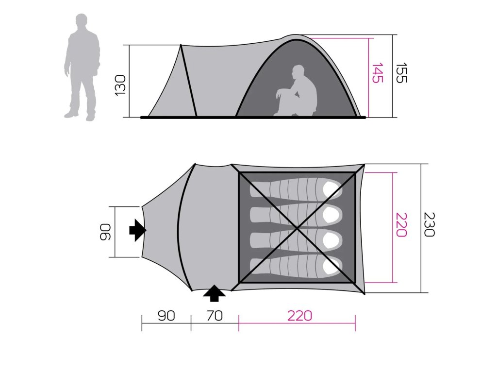 | Rozměr vnějšího stanu: | 230 x 390 x 155 cm |