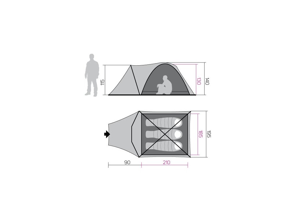 Rozměr vnitřního stanu : 185 x 210 x 130 cm