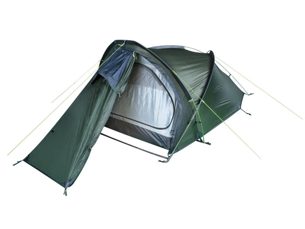 Stabilní odolný stan Hannah RIDER 2 pro dvě osoby s vnější duralovou konstrukcí, s jedním vchodem a jednou apsidou