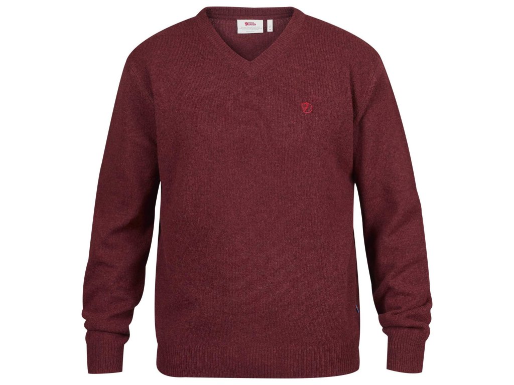 Pletený svetr z jehněčí vlny s výstřihem V, který je olemovaný žebrovaným nápletem. Žebrovaný náplet také na manžetách a spodním lemu.
