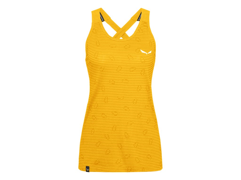Dámské sportovní funkční tílko Salewa Lavaredo Hemp Graphic bez rukávů je určeno pro rychlé, intenzivní aktivity - materiál a konstrukce jsou navrženy tak, aby rychle odváděly vlhkost. Tílko je vyrobené z měkkých konopných vláken a organické bavlny pro maximální pohodlí. příjemné na dotek, poskytuje extrémní prodyšnost, termoregulaci a rychlý odvod potu, a díky překříženým ramínkům tričko skvěle sedí.