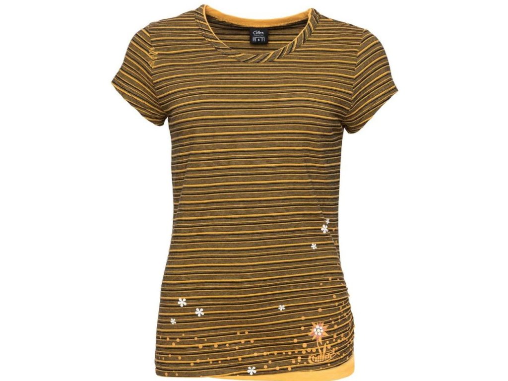 Originální bavlněné dámské předeprané triko Chillaz Fancy Flower s krátkým rukávem, jemným proužkem a jemným flower potiskem,