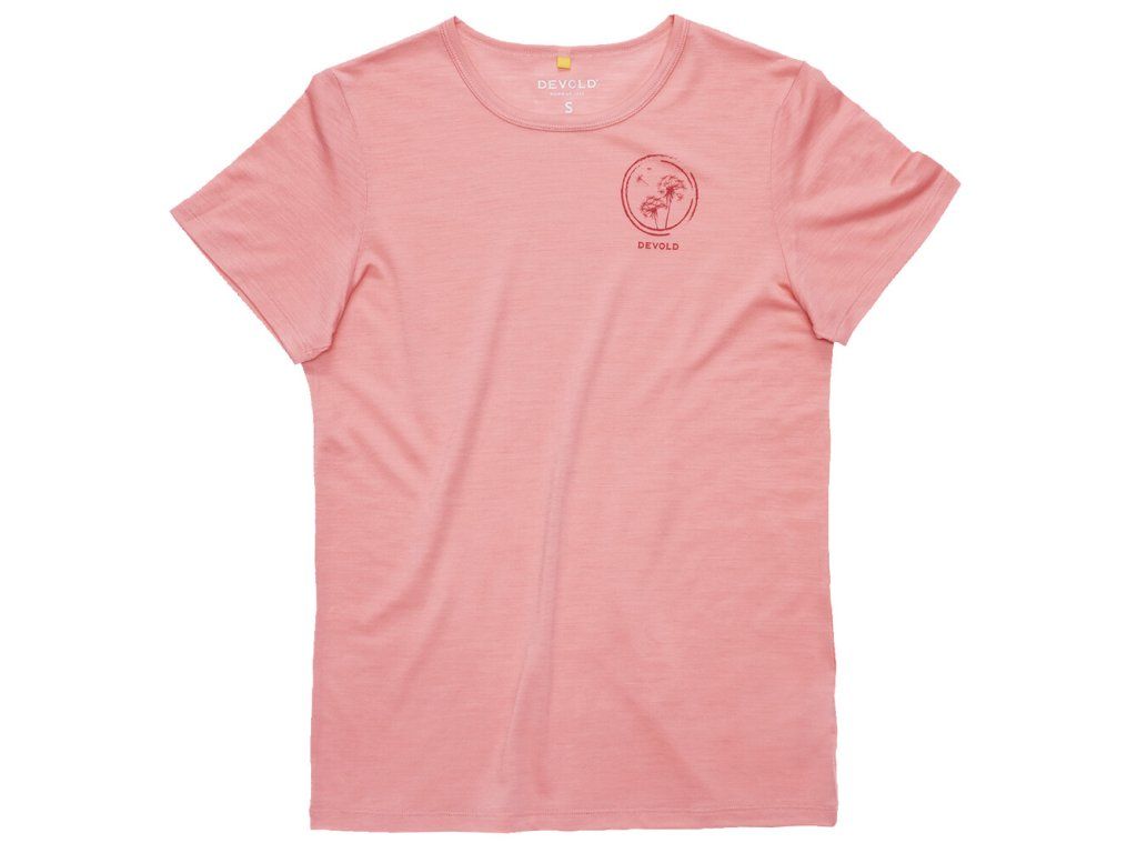Dámské funkční triko Devold Active Spring s krátkým rukávem a s delikátním potiskem. Materiál úpletu kombinuje Merino vlnu a přírodní vlákno Tencel™ (vyrobené z celulózy dřeva). Výsledkem je hladký, rychleschnoucí, velmi příjemný na dotek a prodyšný úplet.