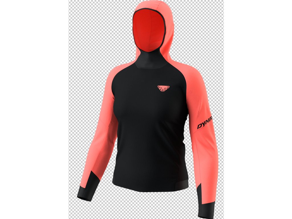 Prodyšné a ultratenké technické funkční dámské tričko ( mikina) Dynafit Alpine L/S Hooded s dlouhým rukávem a kapucí je ideální jako první základní nebo druhá tepelně izolační vrstva.