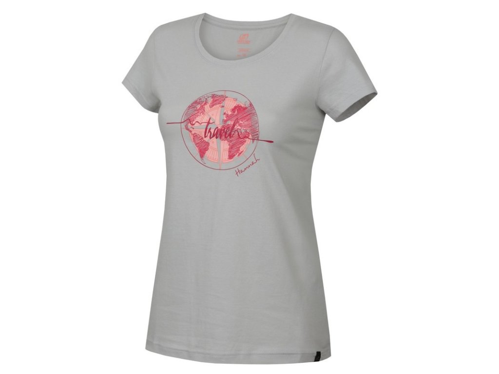 Bavlněné sportovní dámské triko Hannah Flandis, originální outdoorový potisk. Triko užijete jak pro každý letní den kdekoli a kdykoliv tak i na letní víkend na písek do Českého ráje
