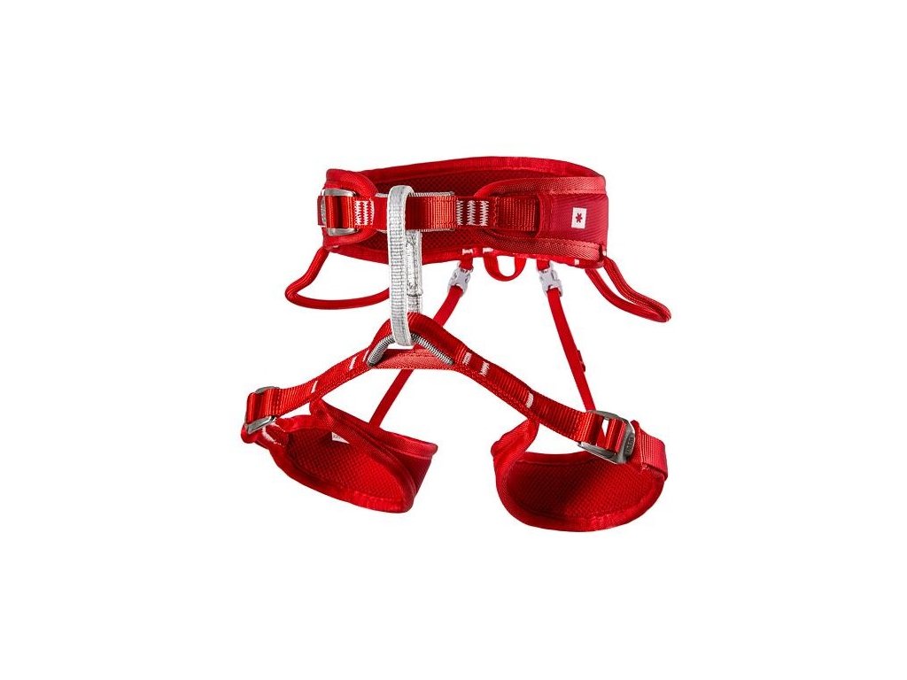 Nadstandardní bezpečí je zajištěno samosvornými přezkami a nerozebíratelnými spoji, které minimalizují riziko špatného navázání. Tvar úvazku je přizpůsoben lidské geometrii, takže optimálně rozkládá tlak při dlouhém visení a nebo v případě pádu.
